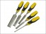 Wood chisel with steel striking cap handle which can be used with a steel hammer.