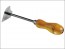 A multi-faceted shavehook with a sharpened and ground steel blade attached to a steel shaft and wooden handle. Used for stripping paint from cove and quadrant mouldings in addition to flat surfaces.