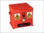 Overcentre catch with padlock facility and finished in bright red with relevant hazard warning signs